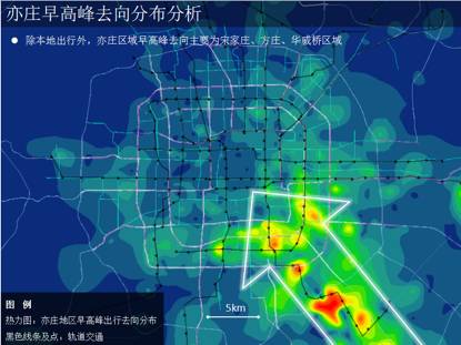 除本地出行外,亦庄区域早高峰去向 主要为宋家庄、方庄、华威桥区域