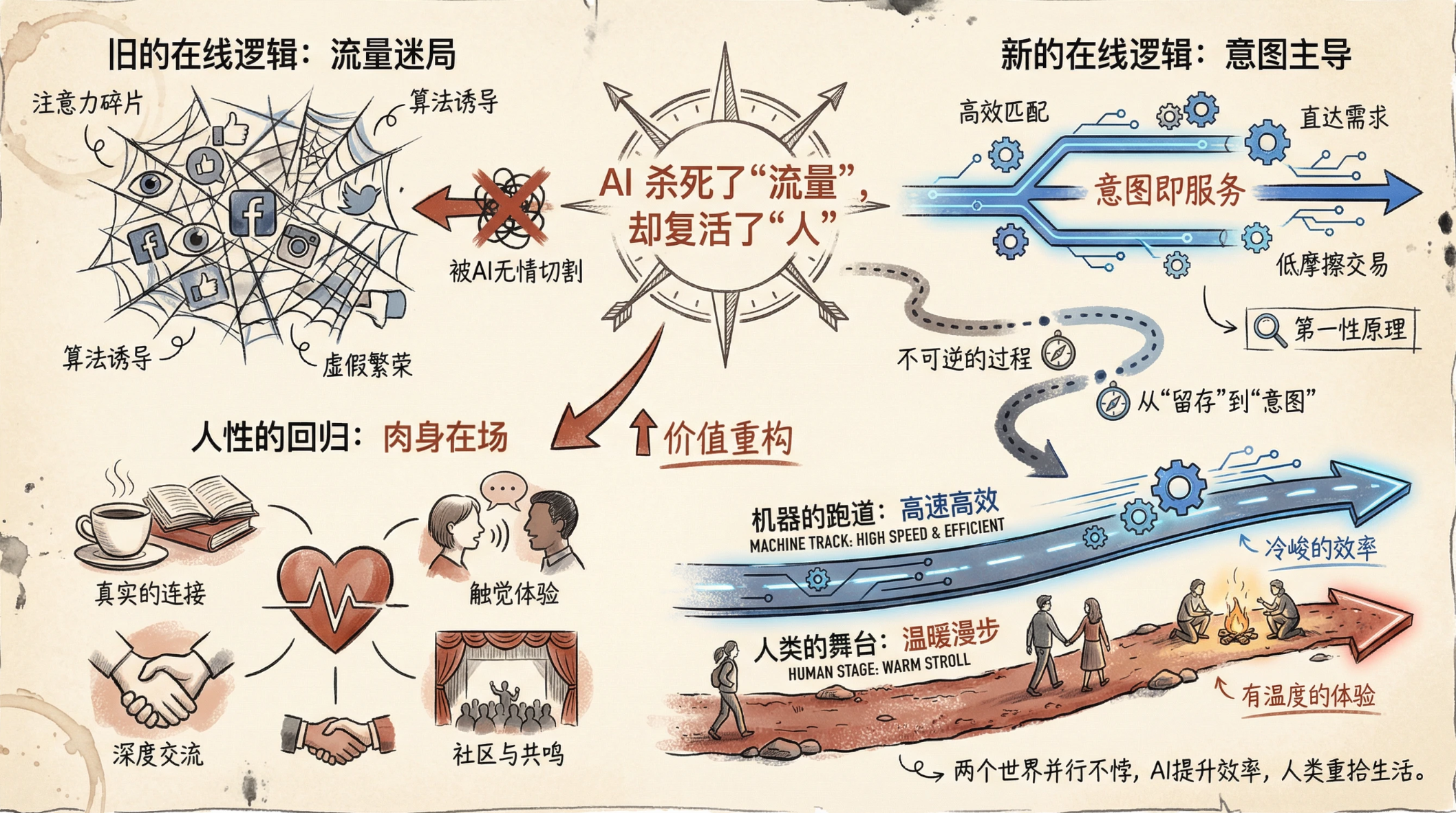 无论过程多曲折,AI 的极致效率,终将碾压现在的流量逻辑。这是一个不可逆的物理过程。