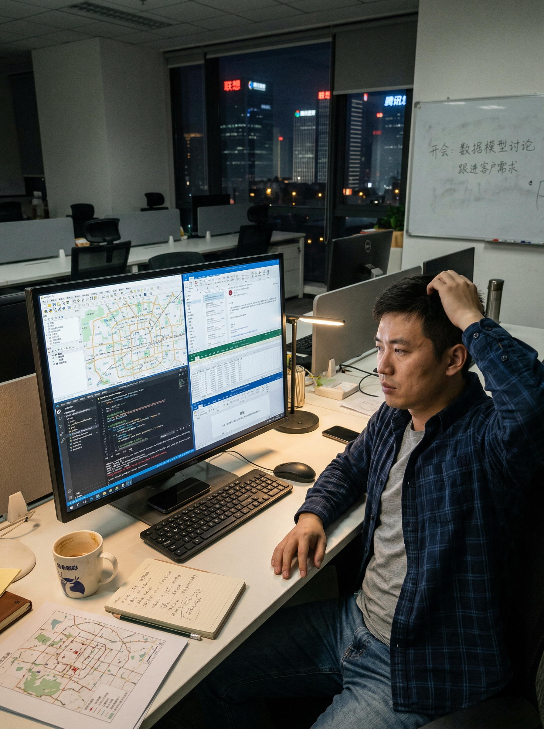 一个GIS工程师的典型一天:开会、改脚本、查报错、整理数据、写邮件、补周报、跟客户对需求。问Ta "哪些可以用AI替代",Ta 会愣住。不是因为没有可替代的部分,而是这些动作已经变成了肌肉记忆的连续体,Ta 从未把它们一个个拆开看过。