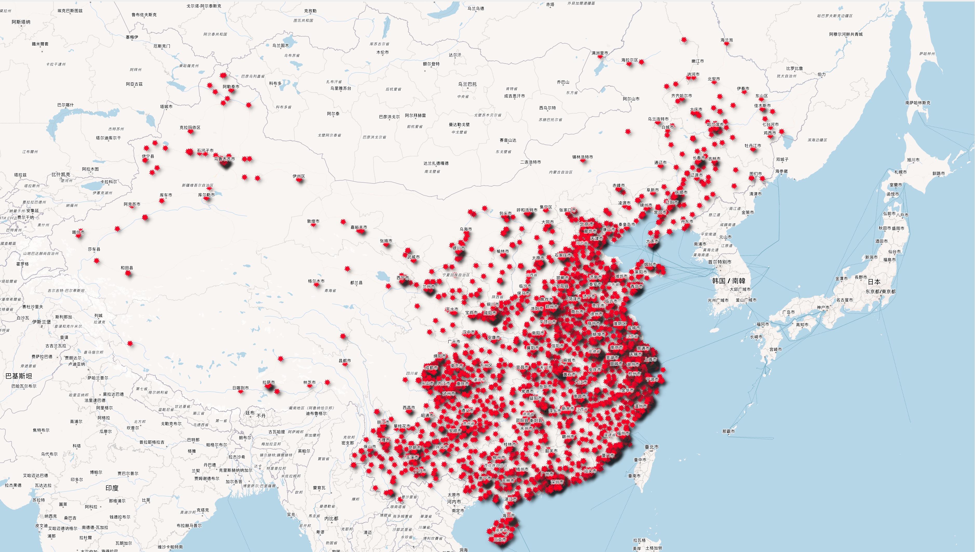 这种"头部密、尾部广"的结构,是连锁品牌最理想的门店网络形态之一。