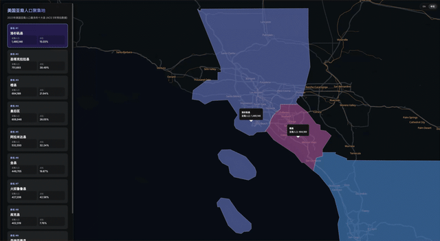 从我已经给你安装的 mcp server中获得 postgres的工具,找出来美国亚裔人口最多的十个县,提取其所有的数据,使用 supabase 的工具,建立一个空间信息表,然后制作一个漂亮的前端应用, 参考使用map_template。html模板中的库 (当然你要熟悉 maplibre 的js 库)。用一个单—html 的页面,讲述一个有意思的故事,并且这个应用我可以放到 cloudflare上共享。
