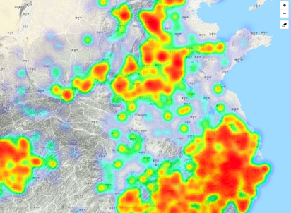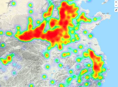 而到了宋代(图3),可以看出南方地区人物分布范围和密度都有了很大的发展。而将地图切换为热力图之后,对比唐宋两代,可以观察到,唐代(图4)北方中原腹地人物分布较为集中且热力值较高,而宋朝情况正好相反。历史课本也早就告诉我们,到宋代(图5)时候,中国古代经济文化重心已经南移,良好的经济基础自然也就带来更良好的教育水平。