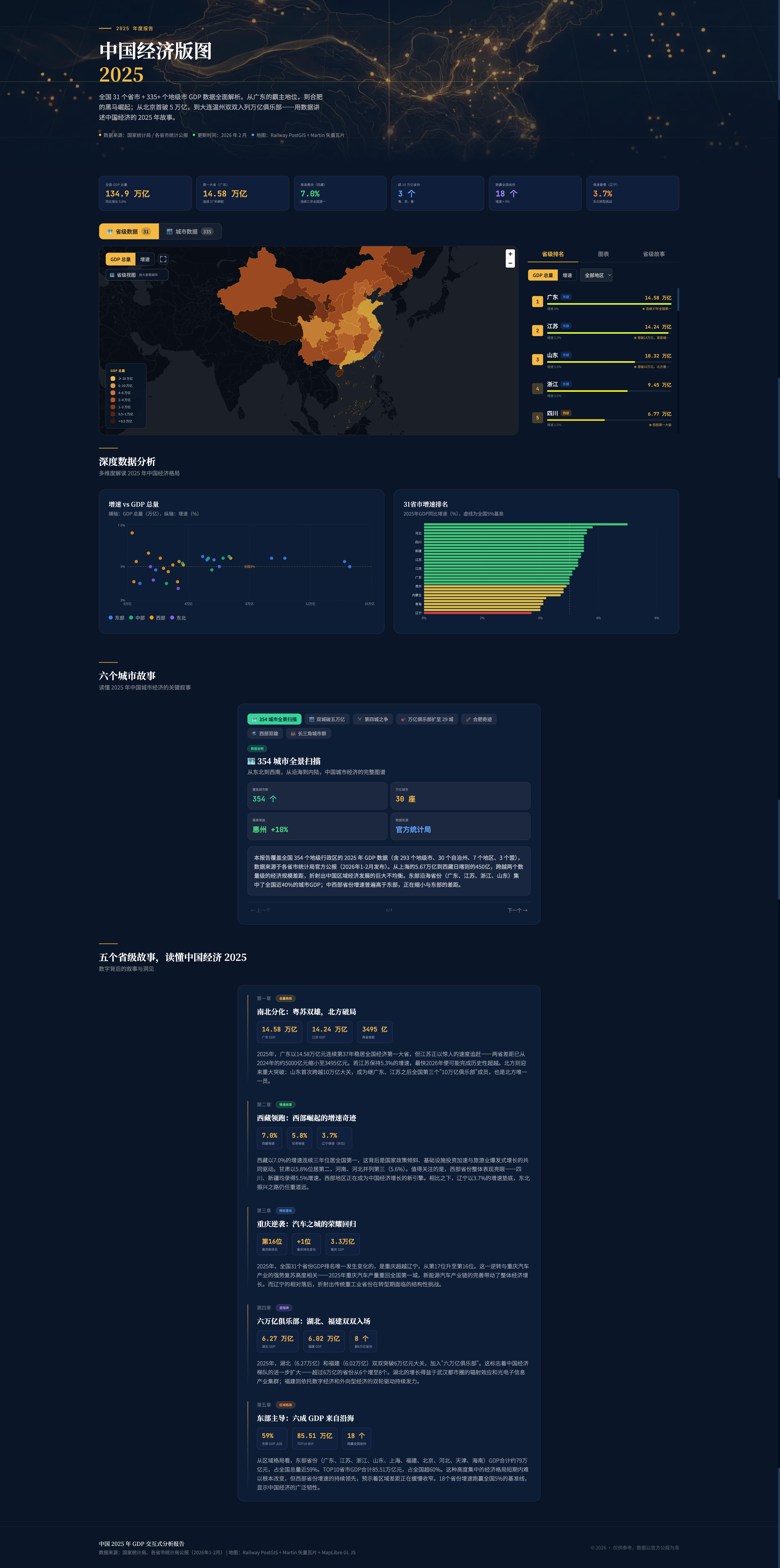 新建一个任务,参考你的 skill,搜索最新的中国省市级 2025 年 GDP。请排序,分析,做总结,讲故事,并在你的交互式报告中,使用 skill 的描述制作地图,行政区划数据已经准备好了,放在 railway 中的 China2024 schema 中