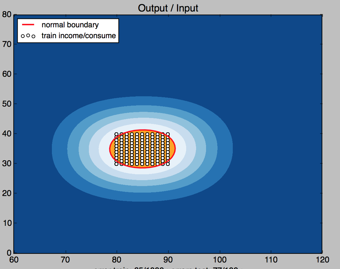 ``` 将训练数据填入进行训练。 这里我们创建的模型会以==X_train==为数据基础进行训练,推算出数据合理范围。如下图所示: