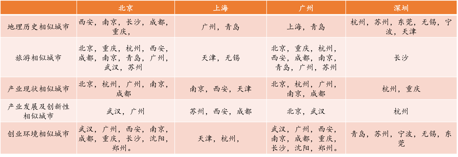 从图中可以看到,南京,杭州,宁波,深圳,广州,苏州,青岛这些沿海城市的水环境是比较优秀的。 #### 五 总结 (1)城市相似性总结 以上的分析中还是可以看到一些新一线城市正在快速的发展。其中南京,杭州,武汉,成都,重庆,苏州的发展在各指标中比较突出。作者对城市之间的相似性和排名总结为了下表(相似城市的排序代表了城市在该指标中的排名):  在这些潜力城市中,除了发展的相似性分类,作者把居民文化活动和生活环境方面具有优势的城市也列了出来供大家参考:  作者喜欢北京,而且从事信息软件服务业,喜欢旅游资源丰富的地方,对环境要求一般,会从南京,西安,成都,武汉,杭州中选择。如果你选择新一线城市,会选择哪里呢?(2)地理相似性和城市发展的关系总结