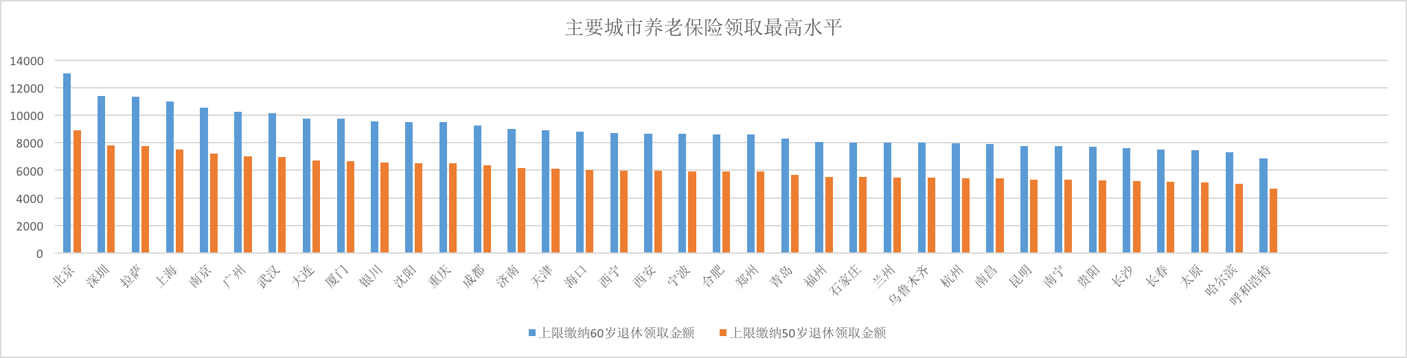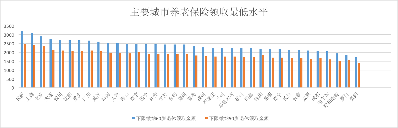 总体来看,北上广,拉萨的平均水平、最高水平、最低水平均领先,拉萨的最低养老保障位列第一,而且拉萨使用的是西藏全区上年度职工月平均工资(6708元)作为缴纳基数参照,西藏五险征缴和待遇计发全区统一,福利待遇很优秀。深圳的最高水平和平均水平位于前列,但由于最低水平参照了市最低工资标准,所以深圳市的养老金最低水平也比较低。
